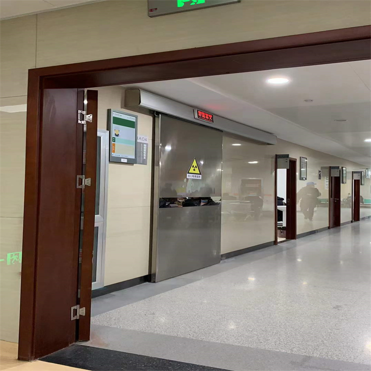 对于工业探伤防护铅板门,其质量要求比较严格,国标纯度要求达到99.994%以上,厚度一般为4-5mm,地面则采用硫酸钡涂料和水泥的混合材料进行防护。医用铅板门则要求门体由四个悬挂式行走轮和一个支撑式行走轮支撑,行走轮的主要功能是起支撑作用,既可降低设计难度,又可从其特点考虑铅门对电磁辐射的防护。医用铅板门还配有门机联锁、工作指示灯、电离辐射标志等安全装置。